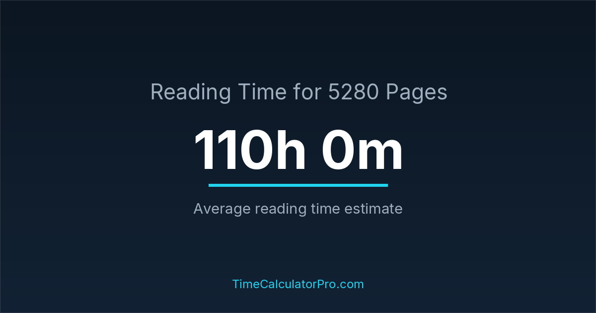 Reading 5280 pages usually takes approximately 110 hours and 0 minutes for the average reader, though this can vary depending on concentration and reading habits.