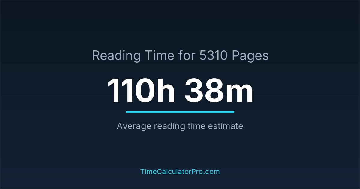 On average, reading 5310 pages may require about 110 hours and 38 minutes for most readers, assuming a standard reading pace and moderate difficulty.