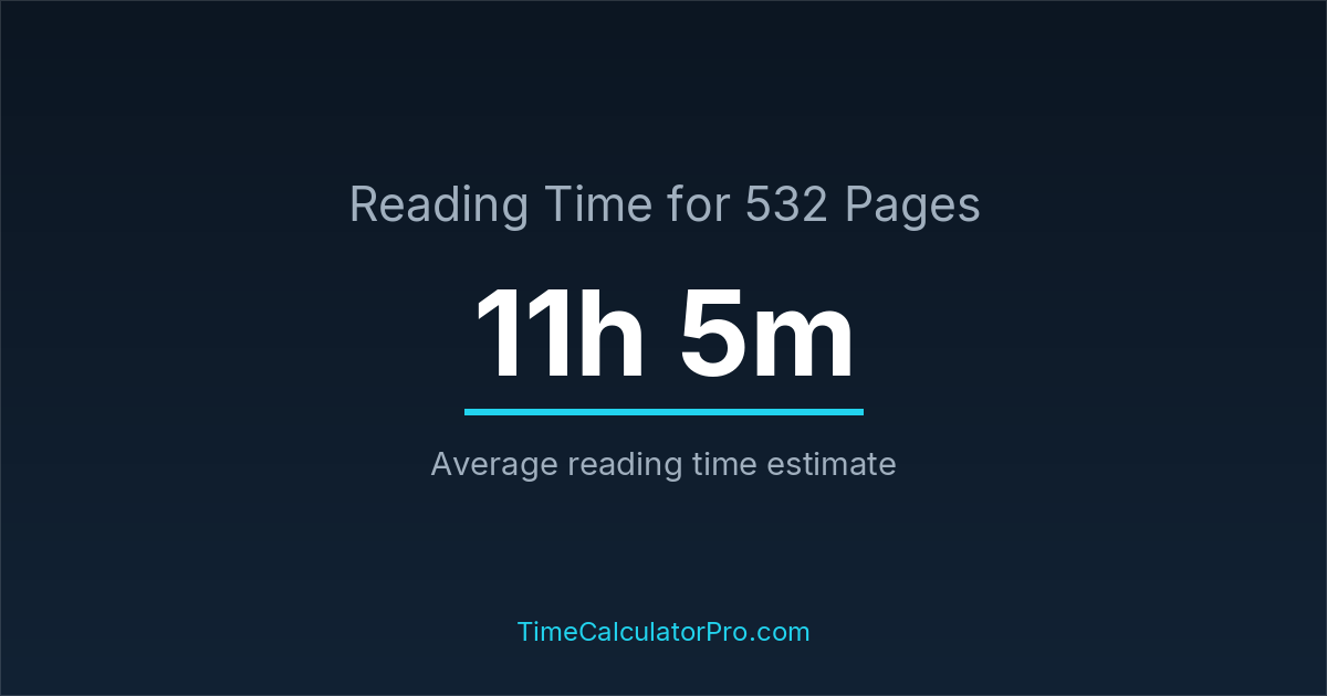 If you are wondering how long it takes to read 532 pages, the estimated reading time is roughly 11 hours and 5 minutes based on common reading speed averages.