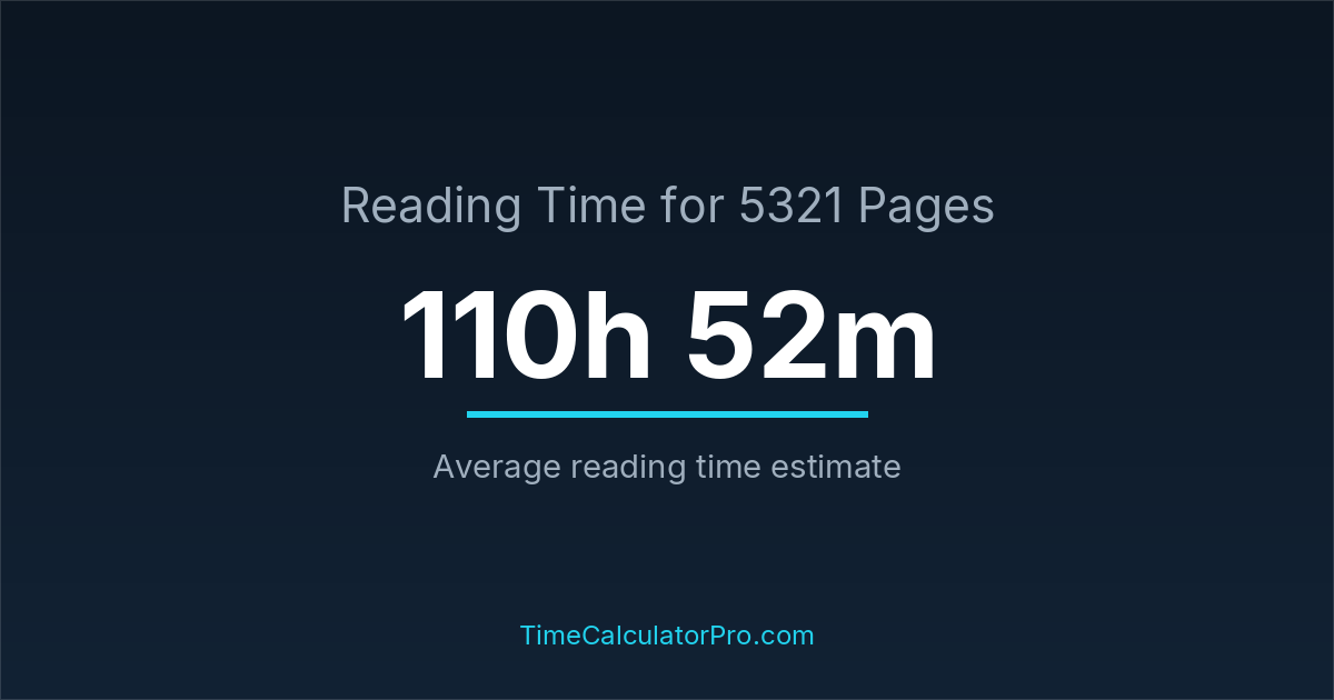 Reading 5321 pages takes about 110 hours and 52 minutes.