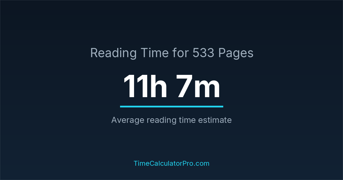 Reading 533 pages takes about 11 hours and 7 minutes.