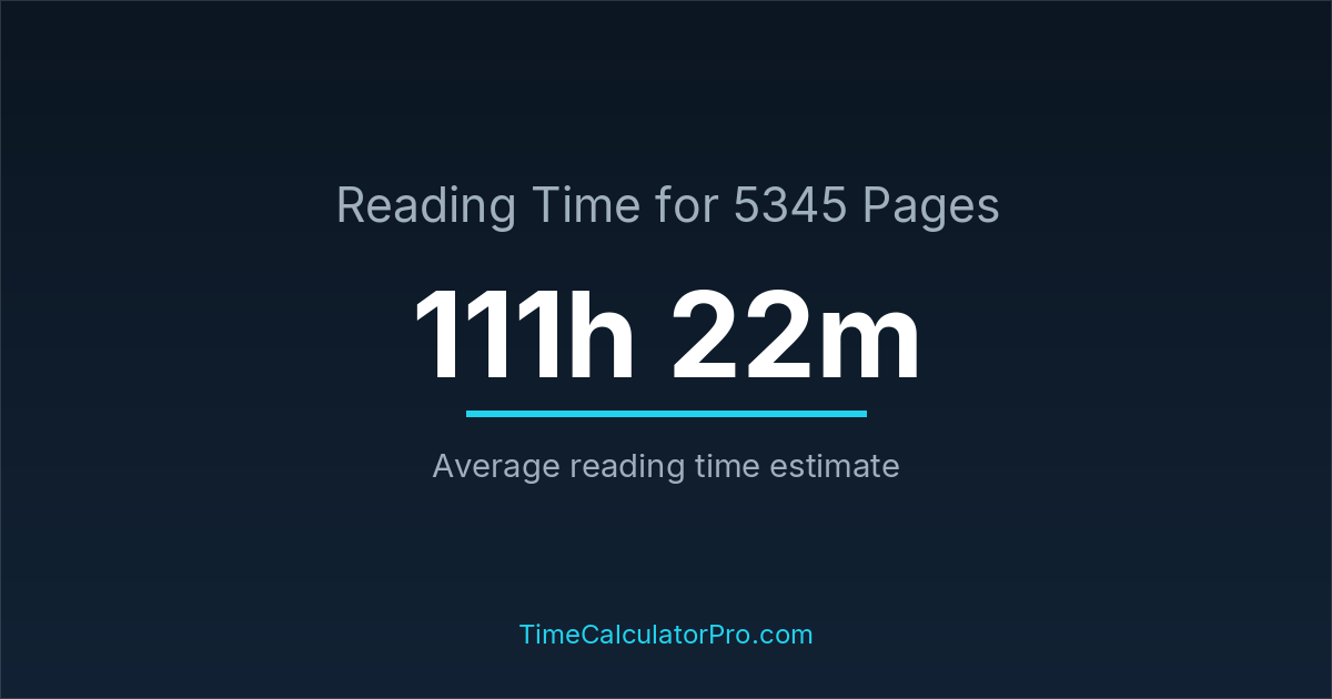 The average reading time for 5345 pages is about 111 hours and 22 minutes, but this can change depending on the difficulty of the text.