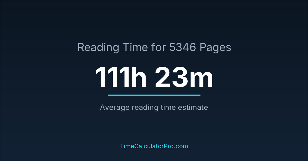 On average, reading 5346 pages may require about 111 hours and 23 minutes for most readers, assuming a standard reading pace and moderate difficulty.