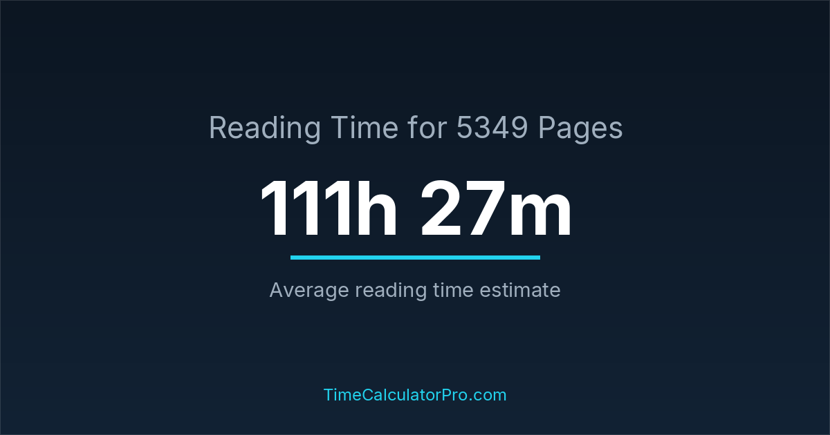 If you are wondering how long it takes to read 5349 pages, the estimated reading time is roughly 111 hours and 27 minutes based on common reading speed averages.