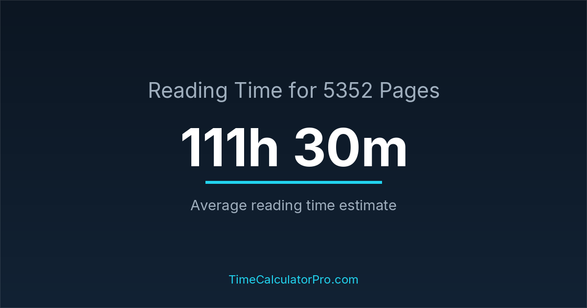 It typically takes around 111 hours and 30 minutes to read 5352 pages depending on your reading speed, focus level, and the complexity of the material.