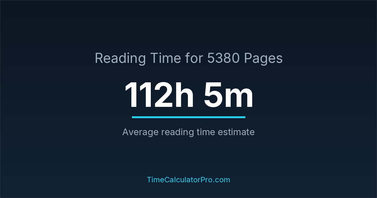 Using a reading time calculator, you can estimate that 5380 pages will take around 112 hours and 5 minutes to complete.
