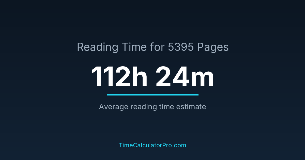 The average reading time for 5395 pages is about 112 hours and 24 minutes, but this can change depending on the difficulty of the text.