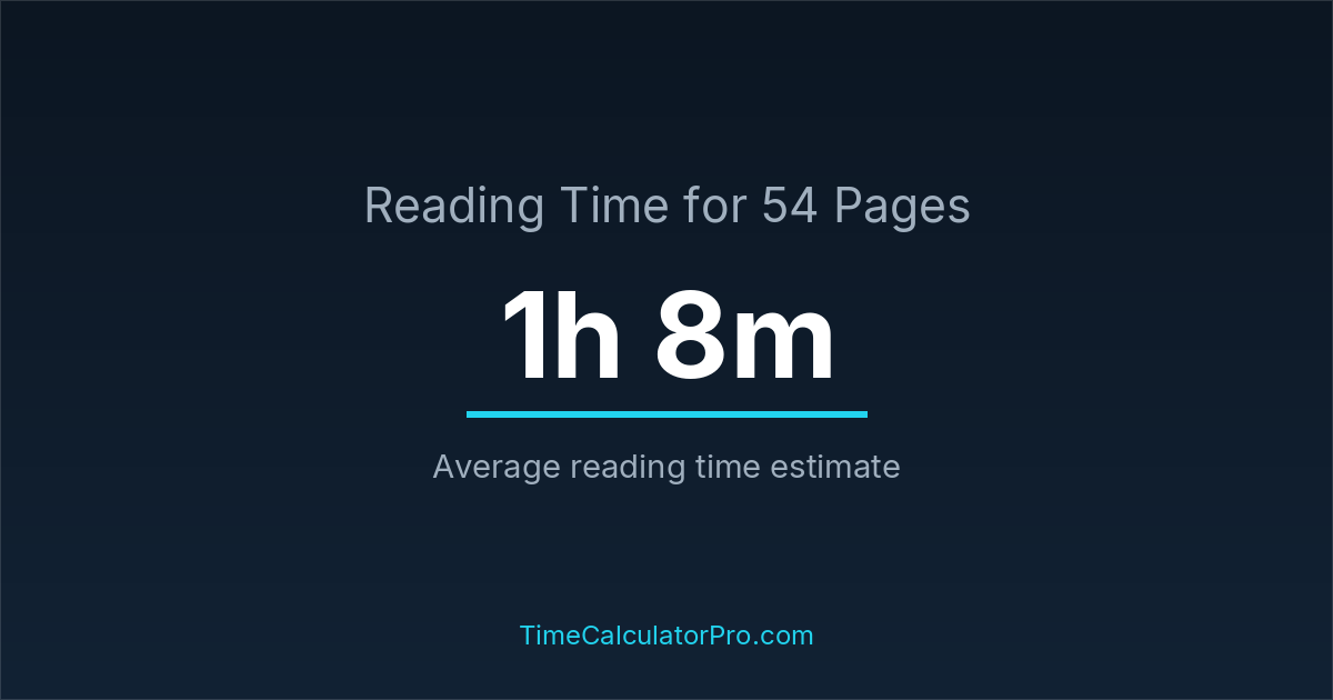 If you read at an average speed of 200 words per minute, reading 54 pages will take approximately 1 hours and 8 minutes. This estimate assumes around 250 words per page, which is typical for most books.