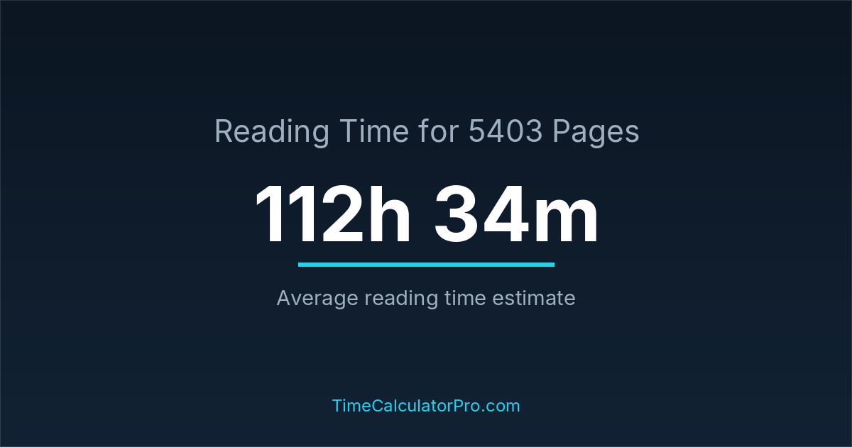 If you read at an average speed of 200 words per minute, reading 5403 pages will take approximately 112 hours and 34 minutes. This estimate assumes around 250 words per page, which is typical for most books.