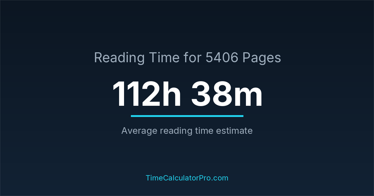If you read at an average speed of 200 words per minute, reading 5406 pages will take approximately 112 hours and 38 minutes. This estimate assumes around 250 words per page, which is typical for most books.