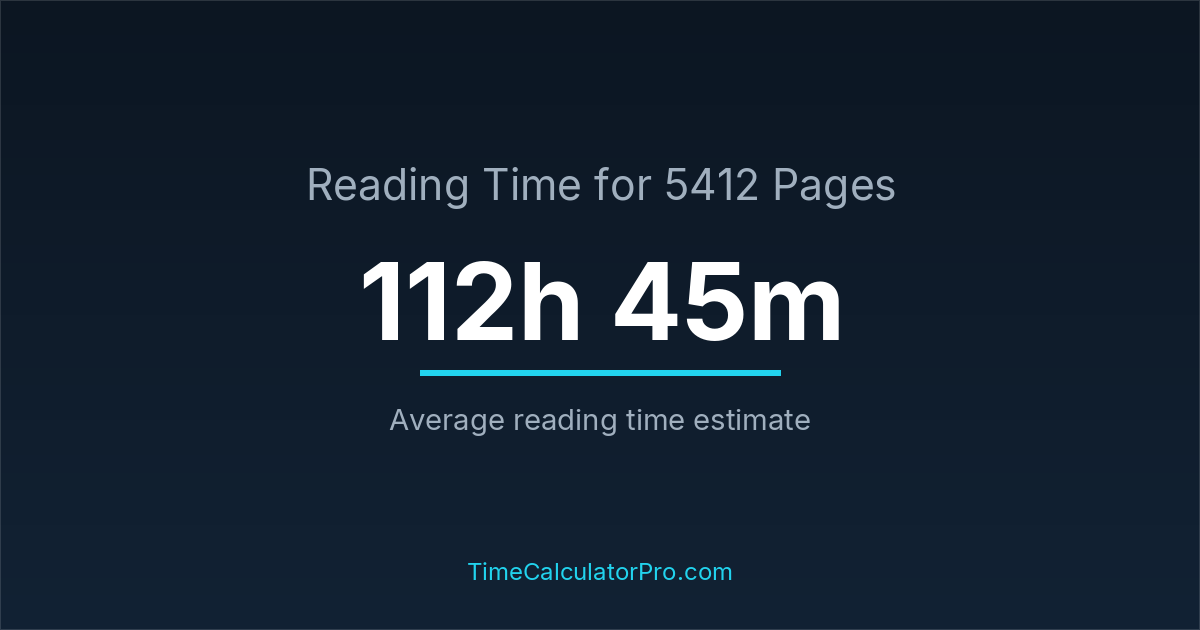 If you are wondering how long it takes to read 5412 pages, the estimated reading time is roughly 112 hours and 45 minutes based on common reading speed averages.