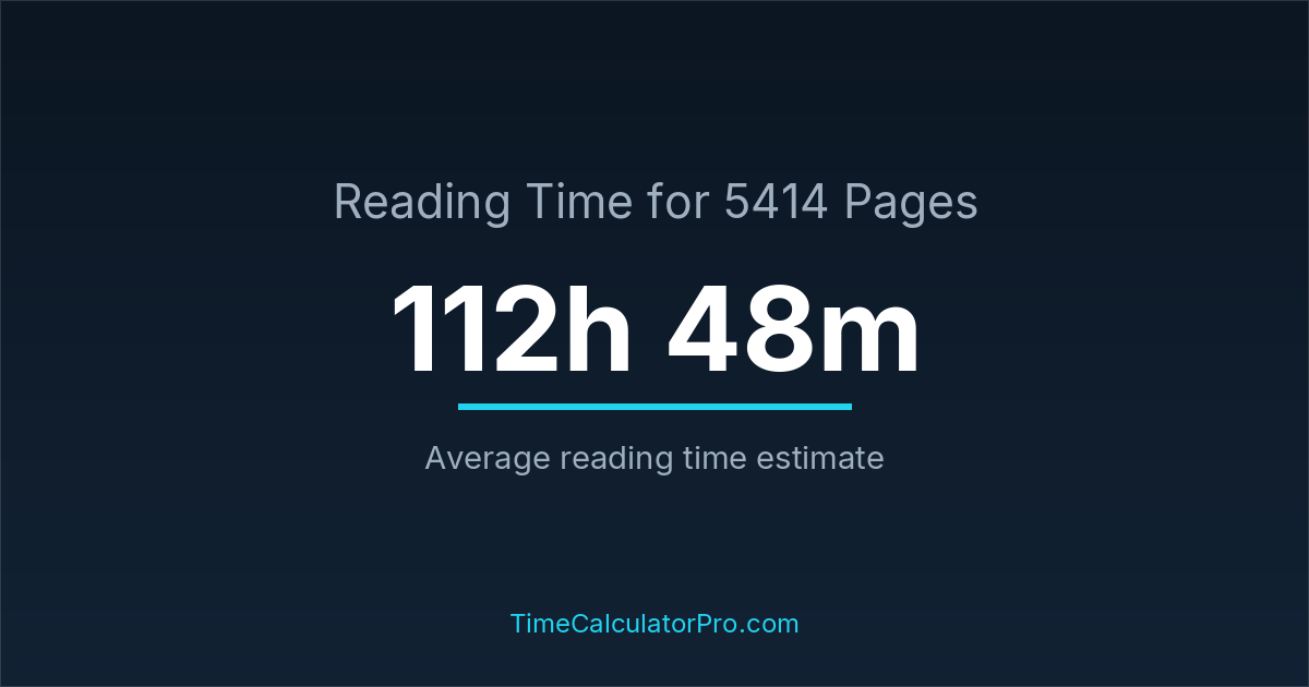 Reading 5414 pages usually takes approximately 112 hours and 48 minutes for the average reader, though this can vary depending on concentration and reading habits.