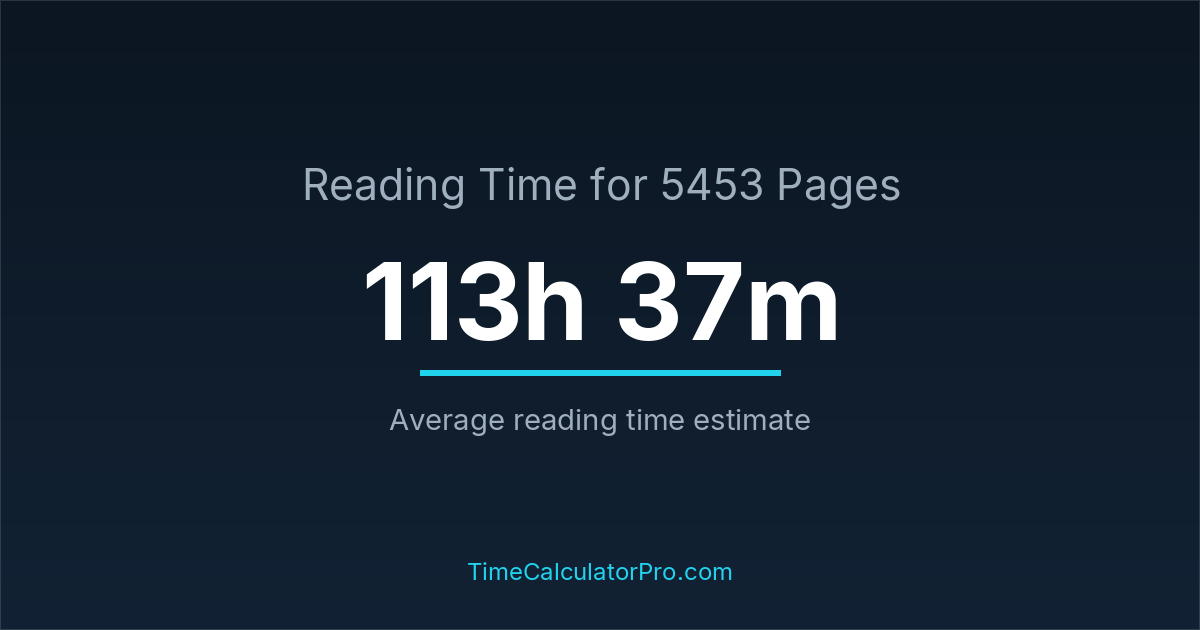 If you are wondering how long it takes to read 5453 pages, the estimated reading time is roughly 113 hours and 37 minutes based on common reading speed averages.