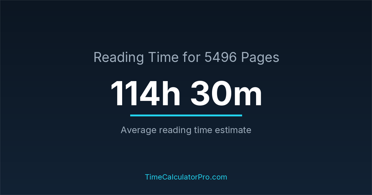 Many readers ask how long it takes to read 5496 pages, and the answer is typically around 114 hours and 30 minutes depending on reading speed.