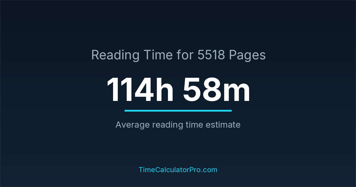 Many readers ask how long it takes to read 5518 pages, and the answer is typically around 114 hours and 58 minutes depending on reading speed.
