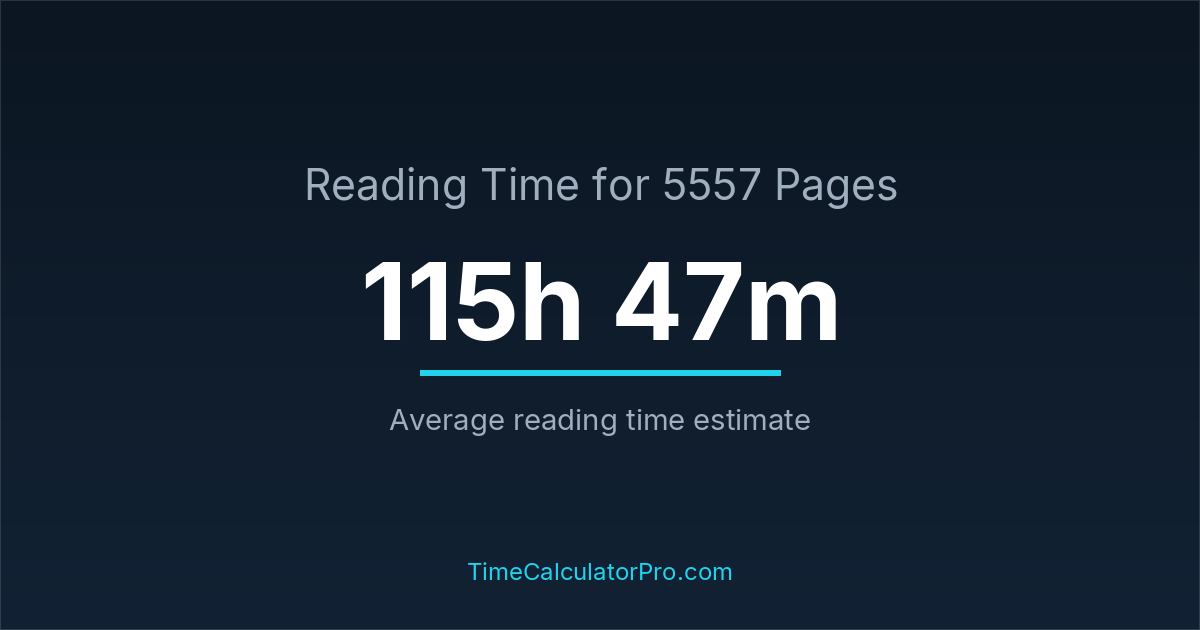 Reading 5557 pages takes about 115 hours and 47 minutes.