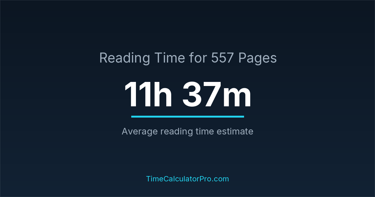 Reading 557 pages takes about 11 hours and 37 minutes.