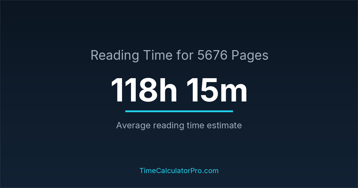 It typically takes around 118 hours and 15 minutes to read 5676 pages depending on your reading speed, focus level, and the complexity of the material.
