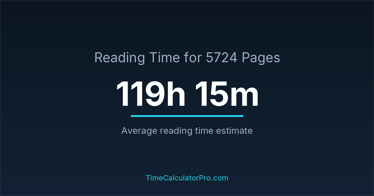 Reading 5724 pages usually takes approximately 119 hours and 15 minutes for the average reader, though this can vary depending on concentration and reading habits.