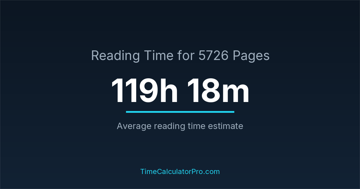 Based on standard reading speeds, reading 5726 pages would take roughly 119 hours and 18 minutes under normal conditions.