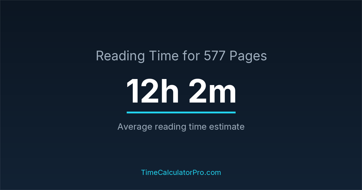 Reading 577 pages takes about 12 hours and 2 minutes.