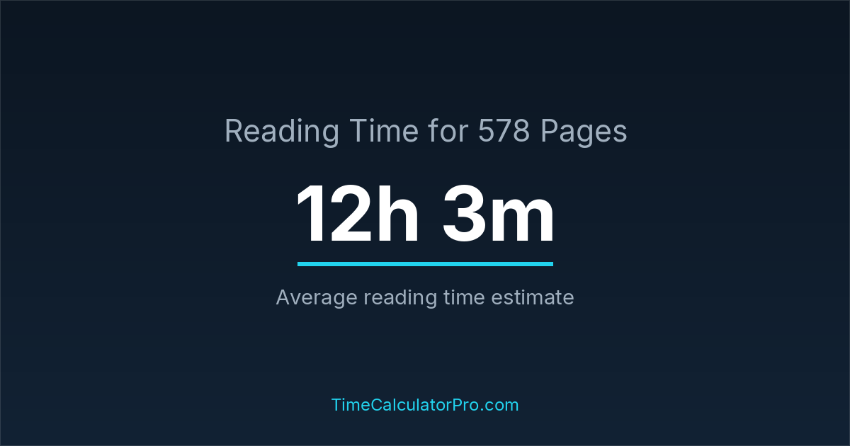 Reading 578 pages takes about 12 hours and 3 minutes.