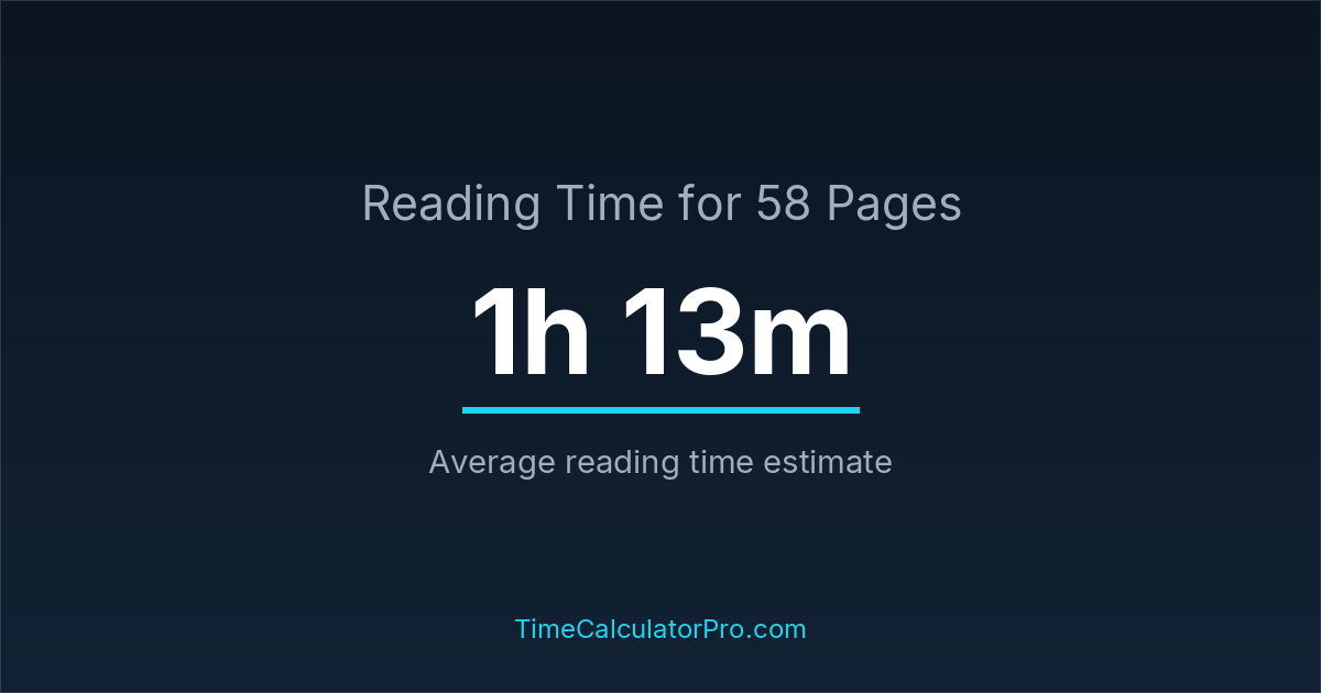 Estimating how long it takes to read 58 pages can help you plan your reading schedule, with an average time of 1 hours and 13 minutes.