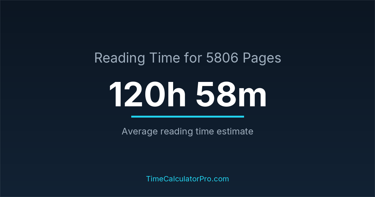 Many readers ask how long it takes to read 5806 pages, and the answer is typically around 120 hours and 58 minutes depending on reading speed.