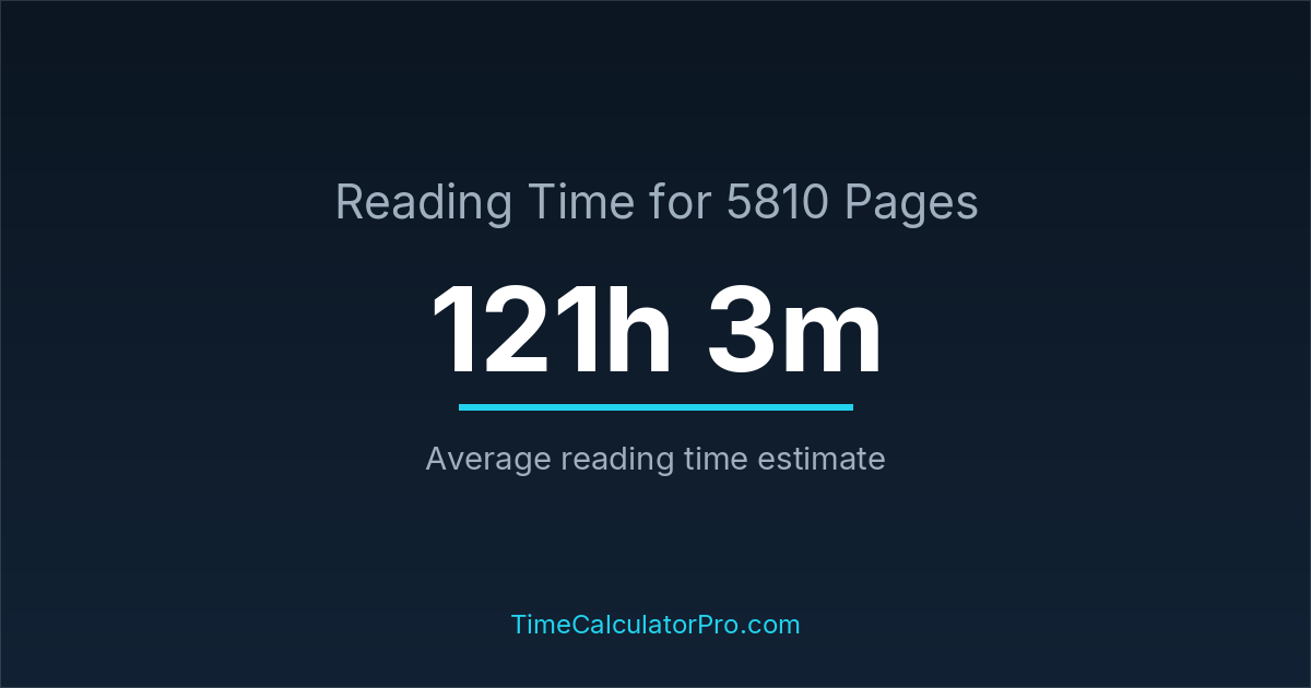 It typically takes around 121 hours and 3 minutes to read 5810 pages depending on your reading speed, focus level, and the complexity of the material.