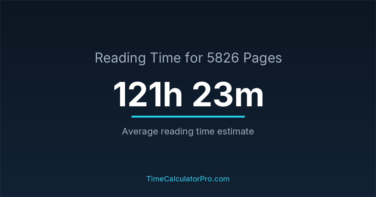 If you are wondering how long it takes to read 5826 pages, the estimated reading time is roughly 121 hours and 23 minutes based on common reading speed averages.