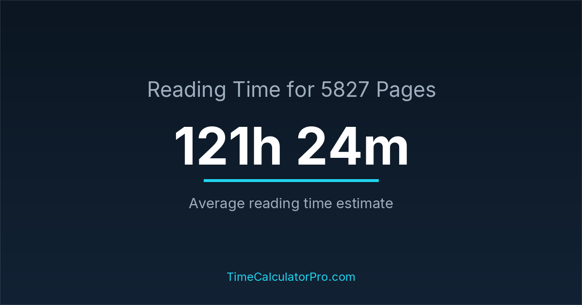 Many readers ask how long it takes to read 5827 pages, and the answer is typically around 121 hours and 24 minutes depending on reading speed.