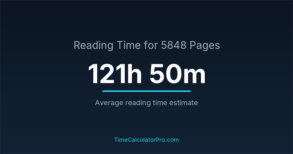 Using a reading time calculator, you can estimate that 5848 pages will take around 121 hours and 50 minutes to complete.