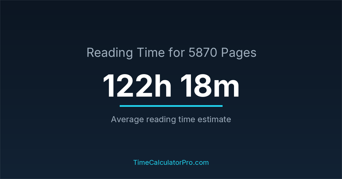 On average, reading 5870 pages may require about 122 hours and 18 minutes for most readers, assuming a standard reading pace and moderate difficulty.