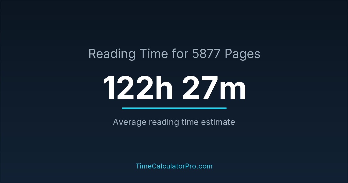 On average, reading 5877 pages may require about 122 hours and 27 minutes for most readers, assuming a standard reading pace and moderate difficulty.