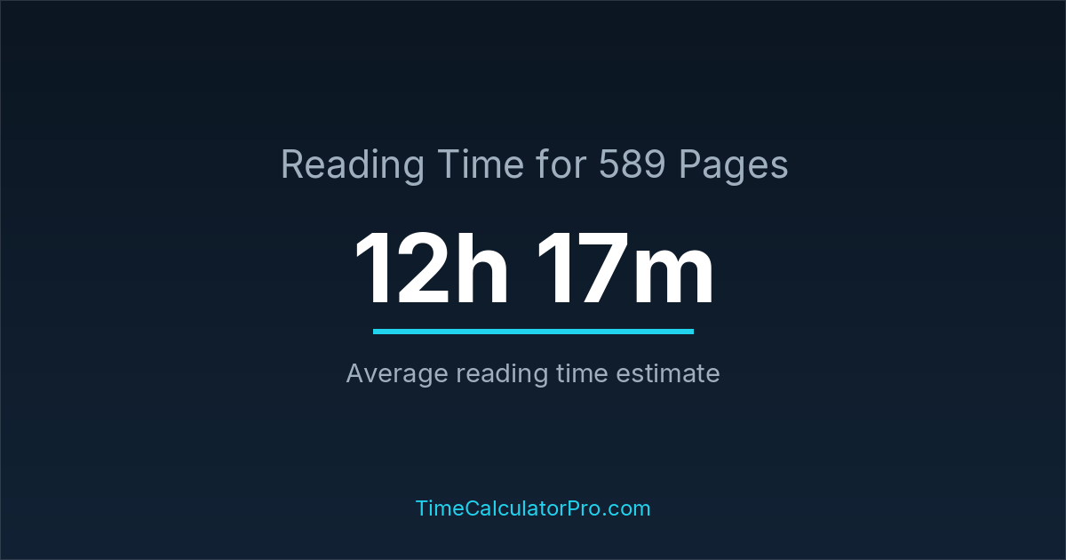 Reading 589 pages takes about 12 hours and 17 minutes.