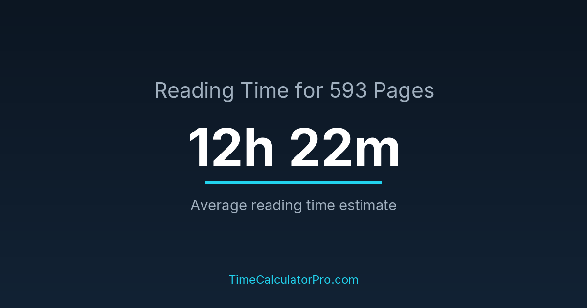 If you read at an average speed of 200 words per minute, reading 593 pages will take approximately 12 hours and 22 minutes. This estimate assumes around 250 words per page, which is typical for most books.