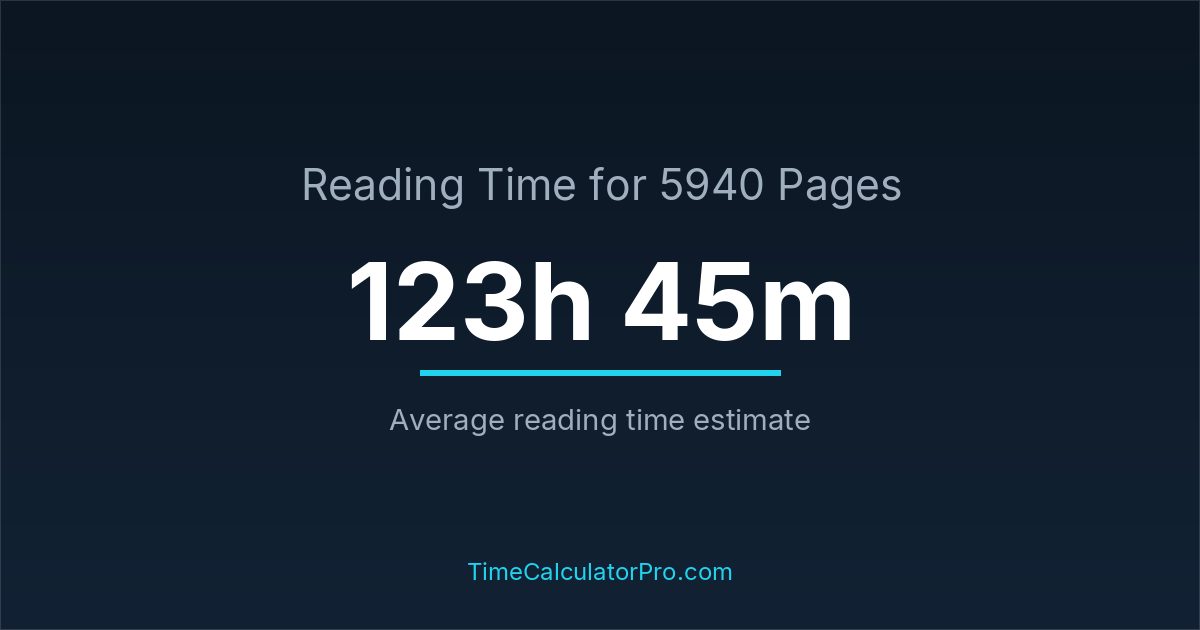 If you read at an average speed of 200 words per minute, reading 5940 pages will take approximately 123 hours and 45 minutes. This estimate assumes around 250 words per page, which is typical for most books.