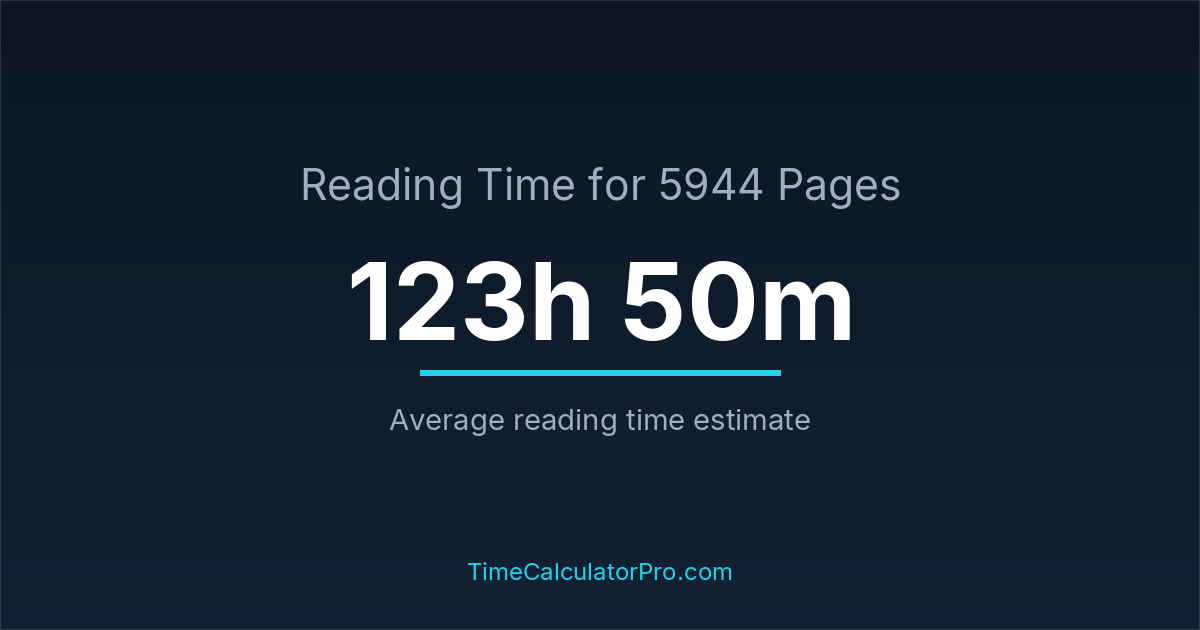 Many readers ask how long it takes to read 5944 pages, and the answer is typically around 123 hours and 50 minutes depending on reading speed.