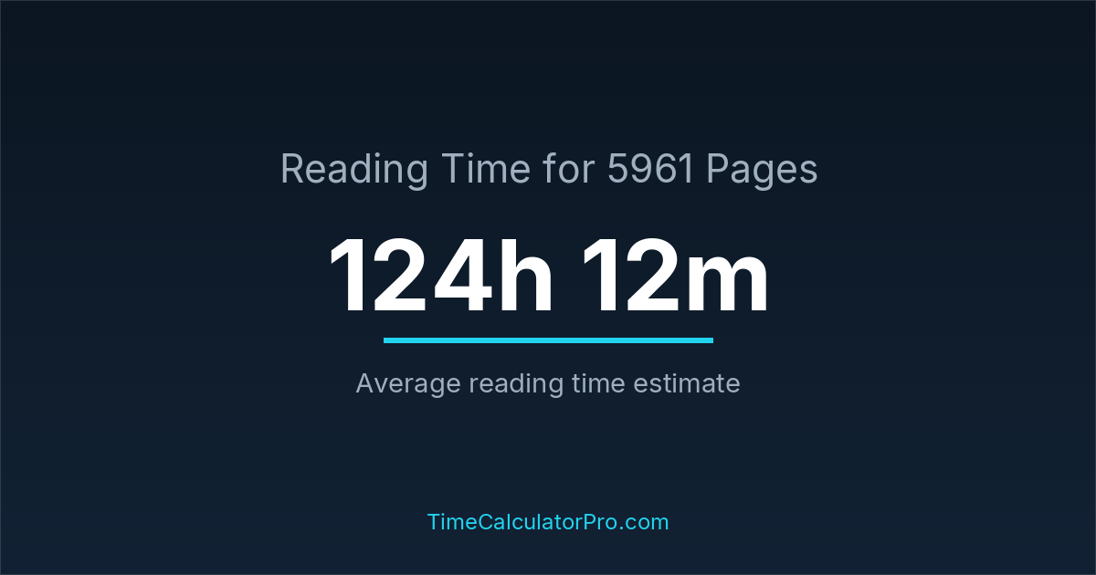 If you read at an average speed of 200 words per minute, reading 5961 pages will take approximately 124 hours and 12 minutes. This estimate assumes around 250 words per page, which is typical for most books.