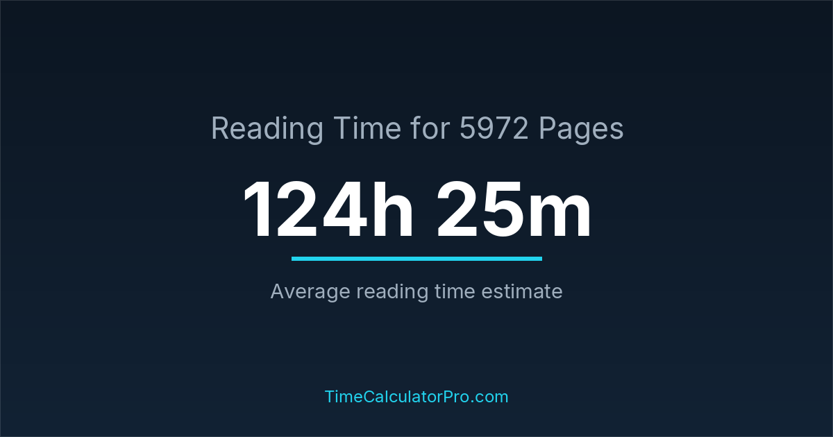 Based on standard reading speeds, reading 5972 pages would take roughly 124 hours and 25 minutes under normal conditions.