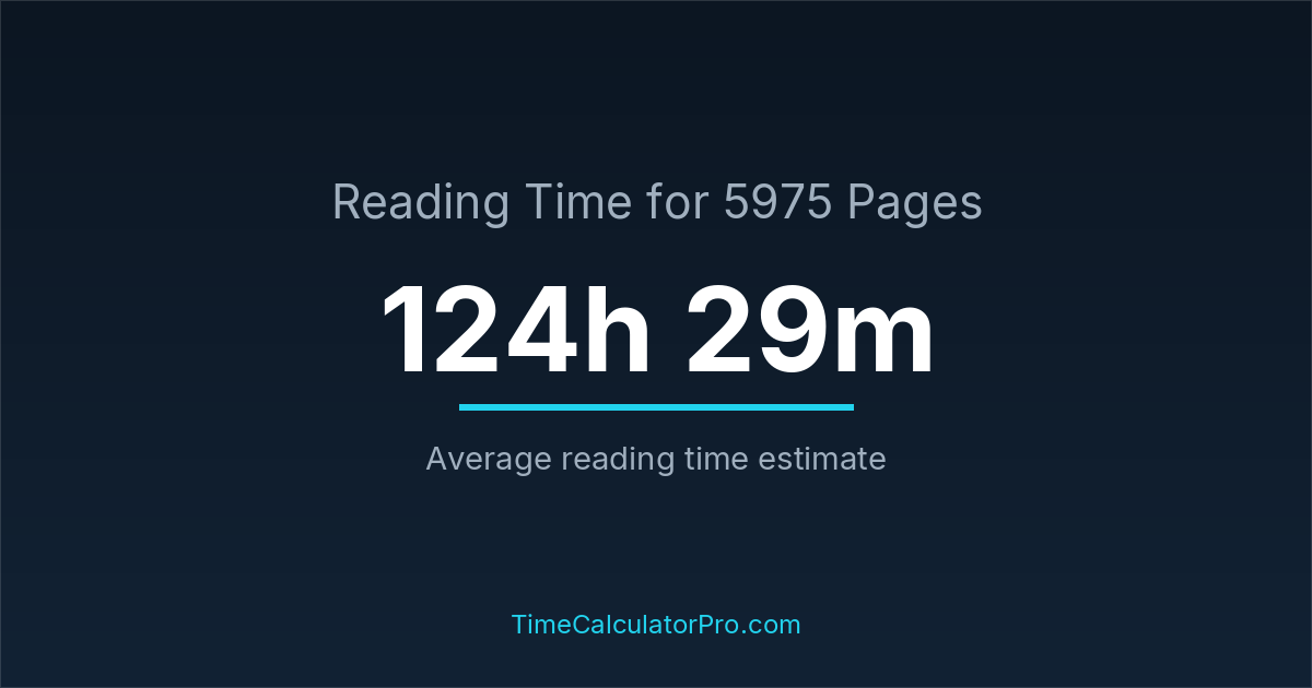 Using a reading time calculator, you can estimate that 5975 pages will take around 124 hours and 29 minutes to complete.