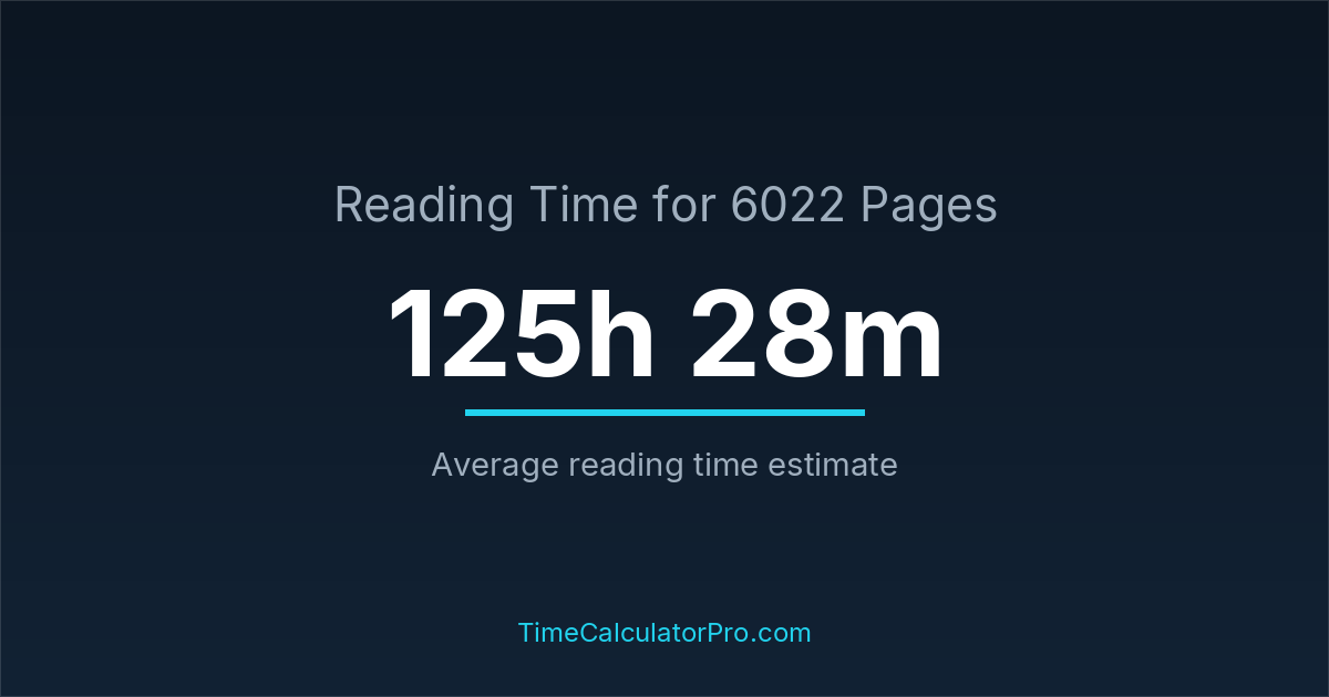 The estimated time to read 6022 pages is approximately 125 hours and 28 minutes for an average adult reader.