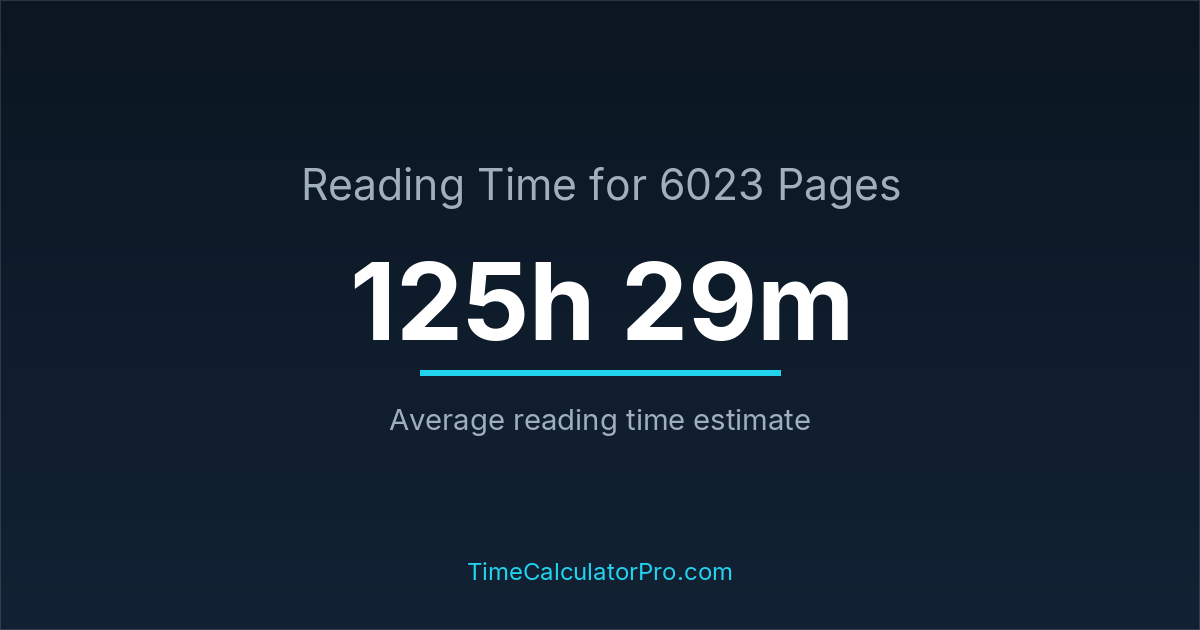 Many readers ask how long it takes to read 6023 pages, and the answer is typically around 125 hours and 29 minutes depending on reading speed.