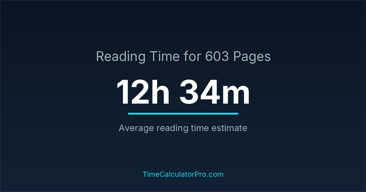 Reading 603 pages takes about 12 hours and 34 minutes.