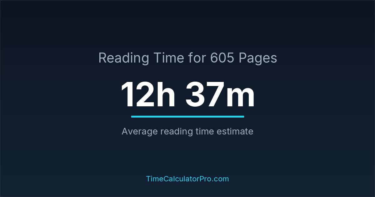 A reading time calculator helps estimate how long it will take to complete 605 pages before you even begin reading, allowing you to plan your time more effectively.