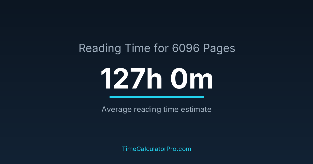 Reading 6096 pages takes about 127 hours and 0 minutes.