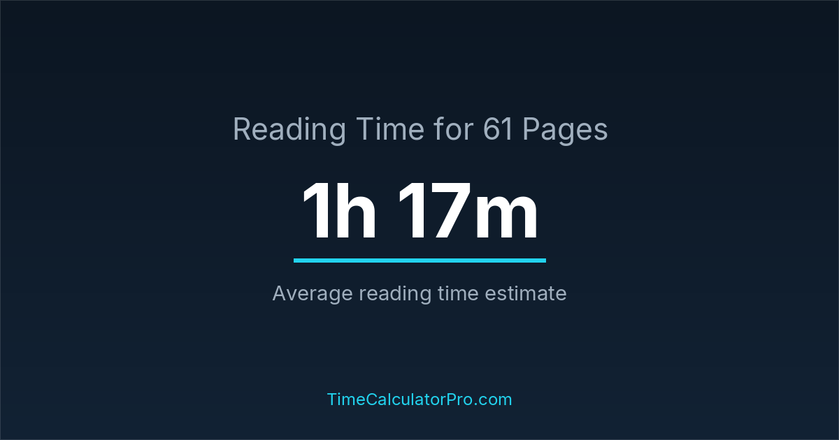 Based on standard reading speeds, reading 61 pages would take roughly 1 hours and 17 minutes under normal conditions.