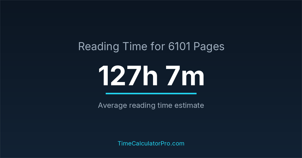 Using a reading time calculator, you can estimate that 6101 pages will take around 127 hours and 7 minutes to complete.