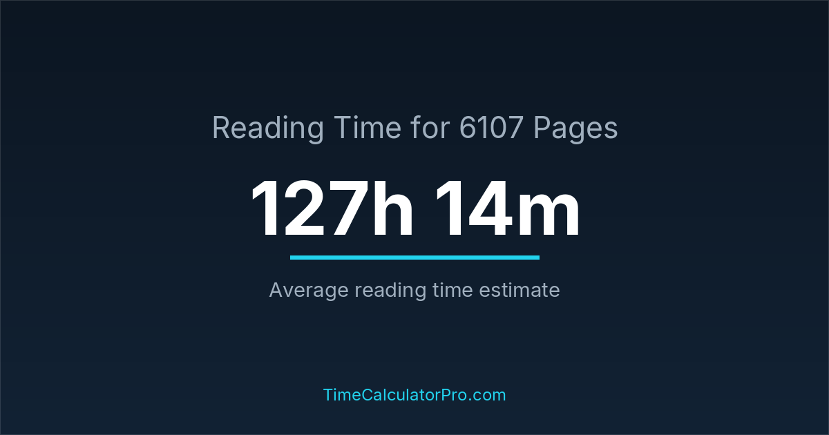 If you read at an average speed of 200 words per minute, reading 6107 pages will take approximately 127 hours and 14 minutes. This estimate assumes around 250 words per page, which is typical for most books.