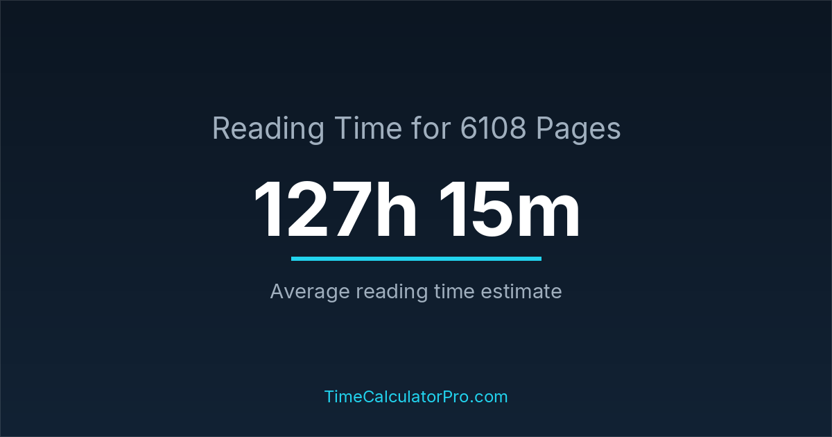 The average reading time for 6108 pages is about 127 hours and 15 minutes, but this can change depending on the difficulty of the text.